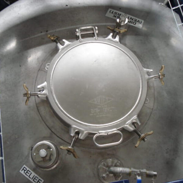 The 500mm Manlid assembly consists of a low profile neck ring welded to a compensating ring, with either 6 or 8 point fastening. Lids are electropolished, while neckrings are passivated and pickled for a corrosive-resistant, long- lasting finish.